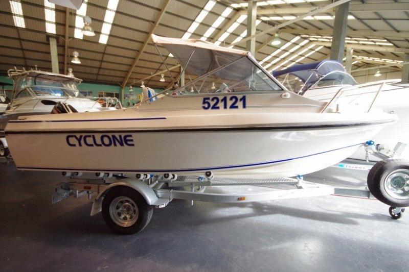 . Late 90s Swiftcraft DominatorPowered by: 2007 Twin 60hp Evinrude E-tec (92 hrs)Complete with: Dual axle TrailerFuel capacity: 150 litresCode: 5254Furuno SounderNavman GPS27 Mhz radioVHF radioBiminiSide clearsOutriggersBait boardBow railHydraulic steering4 x PFDsFlares2 x anchors3 x BatteriesSpare wheel
