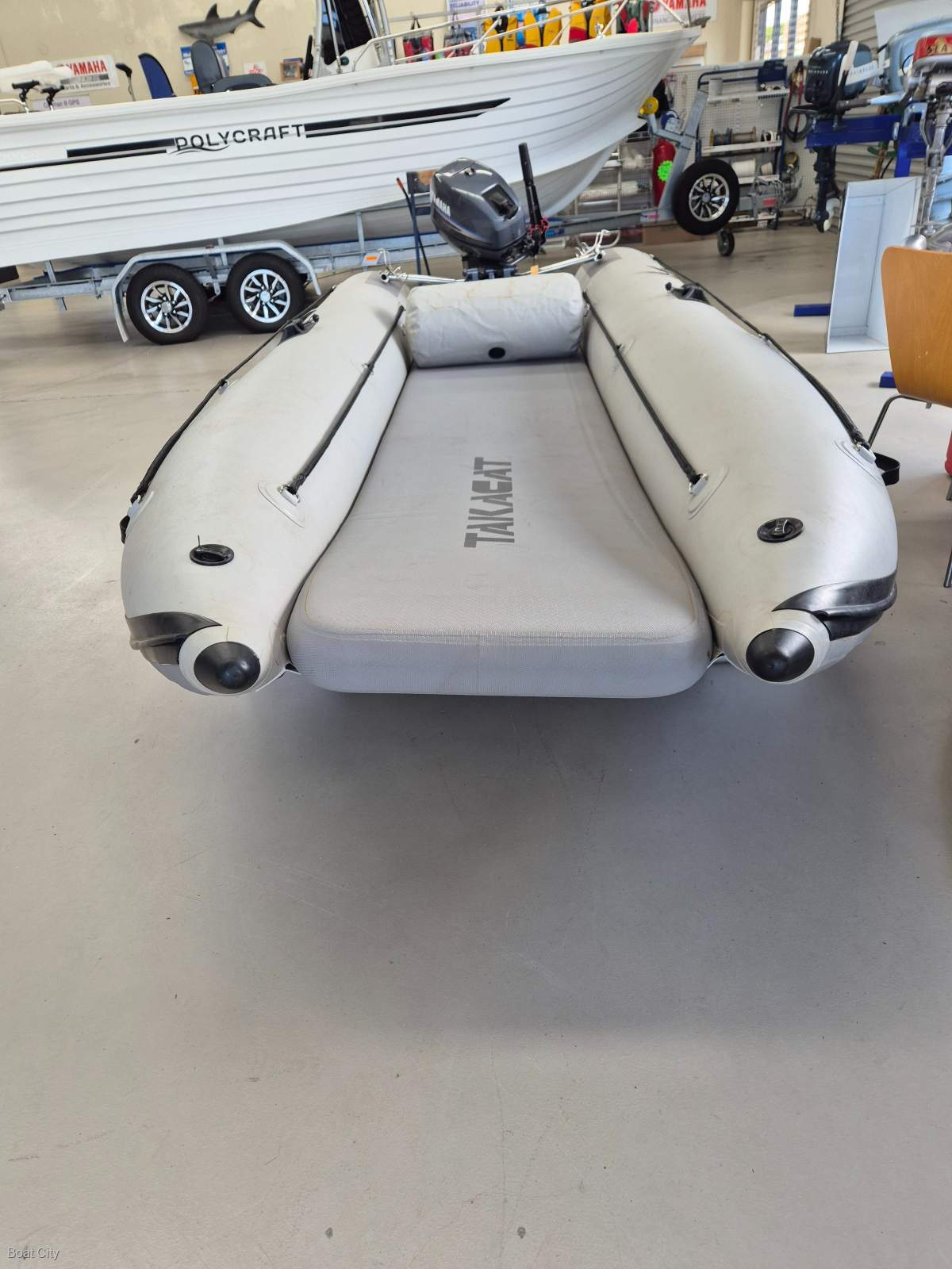 Takacat is no stranger to the boating seen, with over 15,000 sold world wide. These amazing inflatable cat's offer a Super Stable, Portable & Lightweight hull with fully Thermo-Welded Tubes. From diving to fishing or as a lite weight tender or camping boat, they are unbeatable. This one is the Top of the line Hypalon model (RRP $7,790.00 plus freight) and is powered up with an ever reliable Yamaha 15hp two stroke (Market value around $2,200.00), a perfect match of power to weight performance. Comes complete with fuel tank and line, storage bag and pump, paddles, beach wheels and rod holders, ready to go. Save $$$ on replacement and ready for Xmas holiday's.