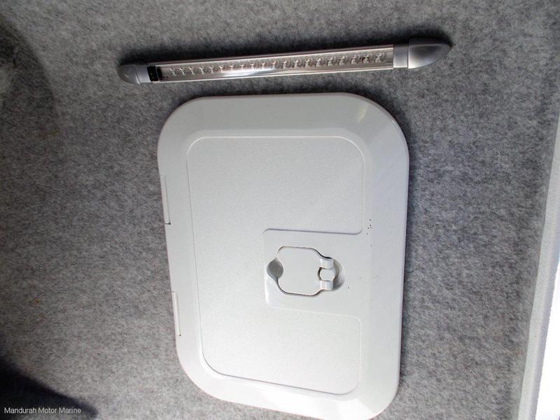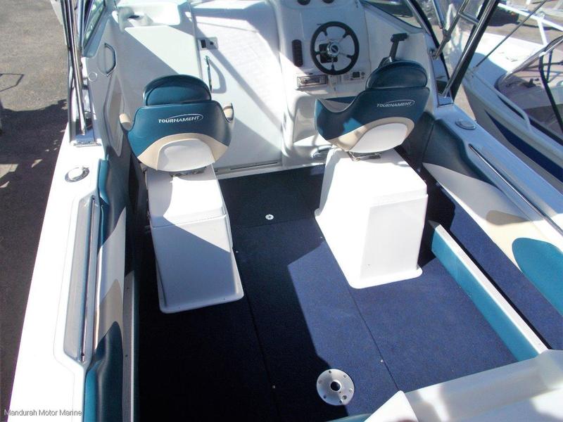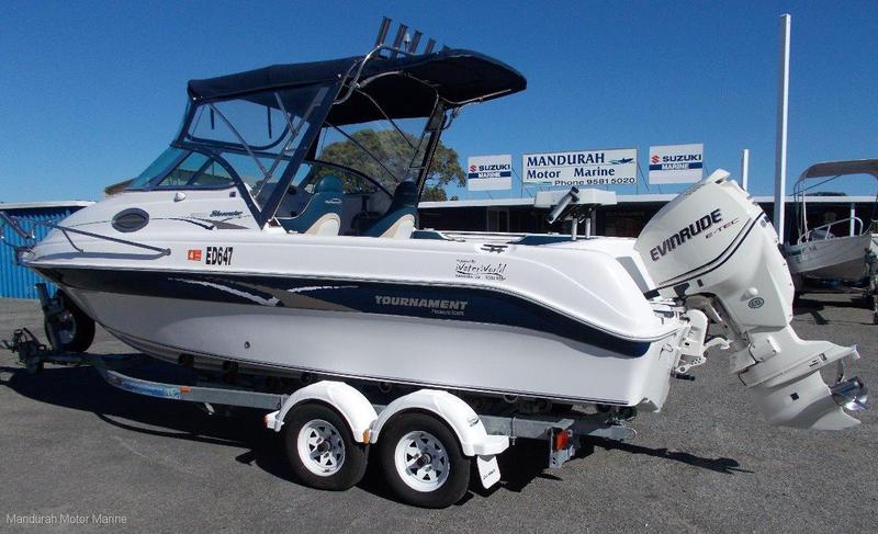 Serious fishing pedigree with family comfort in mind. - Evinrude 150hp with 150 hours- Hydraulic steering - Bimini and clears with rear extension- 6 Life Jackets- Fire extinguisher- Northstar Echo Sounder/GPS Combo - 27MHz radio- Dual Batteries- Stainless steel self-aligning Anchor - Bait Board - Removable table - Under seat storage - Sleeps 2 adults - Lockable cabin- Interior and Navigation Lights - Deck work light- Transom wells- 50L Fresh water tank with sink and transom deck shower- Spare wheel on trailer - Truly exceptional conditionIdeally located in Mandurah, in arguably WA's best aquatic playground, we are the natural choice in the greater Peel region, when it comes to buying or selling a boat. We have a proud twelve years of history as a family owned and run business and we want help you make your choice to deal with a marine dealer as pleasurable as possible. We have an extensive range of new and used vessels and represent only quality brands, so you know that peace of mind will come standard, when purchasing. Not only that, we can offer you in depth advice and work with you to find the perfect boat for you and your family. When it comes time to sell, our consignment service is second to none. We are proud to be a 'Platinum Partner' of Club Marine insurance and can even offer in-house finance, through Latitude. We are also a long standing member of the Boating Industry Association, or BIA. We are always eager to hear from new customers and aim to be your marine partner, for life. At Mandurah Motor Marine, 'we believe in leisure'.