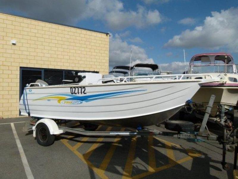 WELL KEPT THIS BOAT HAS A GREAT OPEN DECK. MOVE-ABLE SEATING TO SUIT YOUR NEEDS. FRONT CASTING PLATFORM. PLENTY OF WHISPER QUIET ECONOMICAL POWER FROM THE HONDA 50HP FOUR STROKE. GREAT FOR CRABBING FISHING. LIGHT TO HANDLE, EASY TO TOW.EngineHONDA 50HP FOUR STROKESafetyGearPFDSElectricsMARINE RADIOElectronicsLOWRANCE HDS 7 COMPASSDeckGearLARGE UNDER FLOOR FLOOD-ABLE KILL WELL SIDE POCKETS FOLD AWAY BOARDING LADDER BOARDING PLATFORM WITH SIDE HAND RAIL ROD RACK SPIGOT MOUNTED BAIT BOARD MOVE-ABLE CAPTAINS CHAIRS TRANSOM MOUNTED LIVE BAIT TANK TRANSOM MOUNTED ROD HOLDERS.TrailerSINGLE AXLE TRAILER WITH SPARE