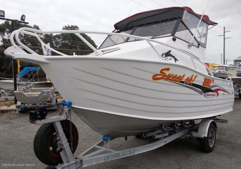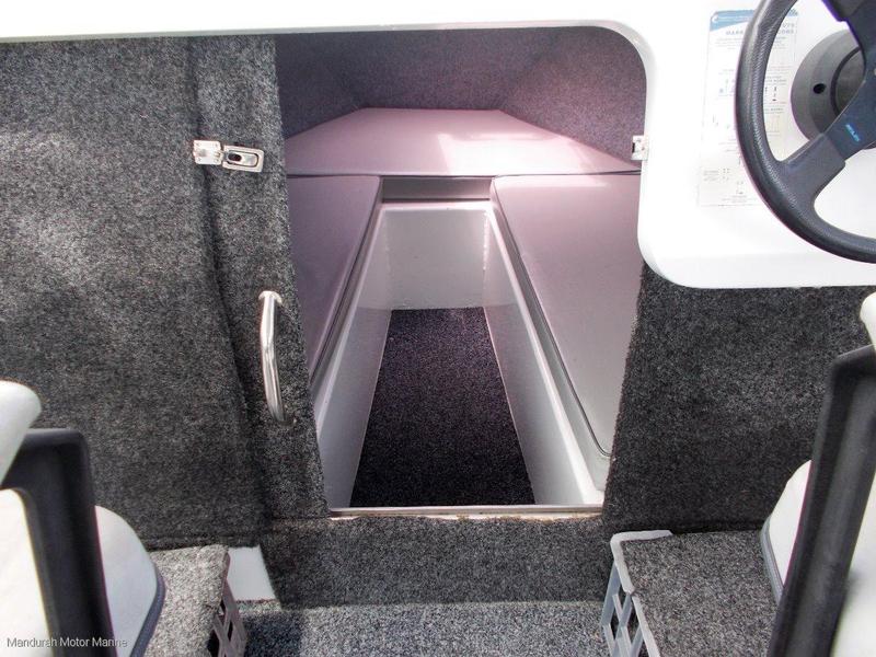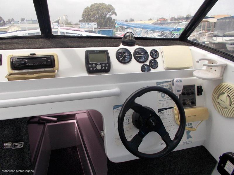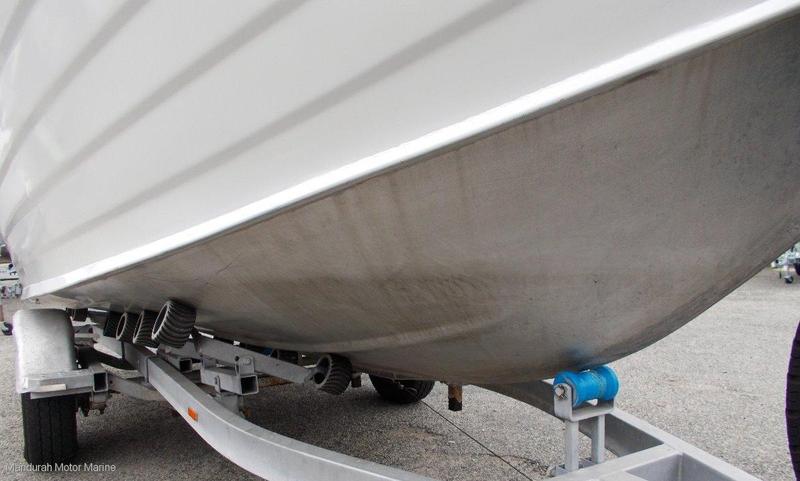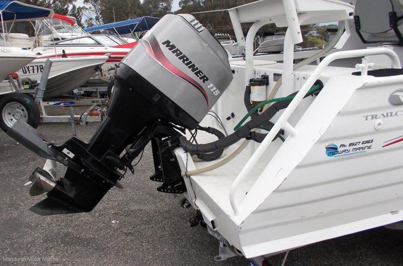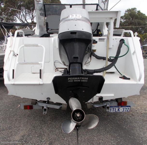 - Mariner Oil injected 2 Stroke 115HP- Stainless steel propeller - Permatrim Hydrafoil for rapid planing- 120L fuel tank - Humminbird 788 sounder GPS- 27MHz Radio - 4 Life jackets- Flares- Fire extinguisher- EPIRB- Bait Board (removable) - 2 x gunnel mounted jump seats- Canopy with rear extension- Lockable cabin with cushions in excellent condition- Under seat storage - Drive on trailer with spare wheel Ideally located in Mandurah, in arguably WA's best aquatic playground, we are the natural choice in the greater Peel region, when it comes to buying or selling a boat. We have a proud twelve years of history as a family owned and run business and we want help you make your choice to deal with a marine dealer as pleasurable as possible. We have an extensive range of new and used vessels and represent only quality brands, so you know that peace of mind will come standard, when purchasing. Not only that, we can offer you in depth advice and work with you to find the perfect boat for you and your family. When it comes time to sell, our consignment service is second to none. We are proud to be a 'Platinum Partner' of Club Marine insurance and can even offer in-house finance, through Latitude. We are also a long standing member of the Boating Industry Association, or BIA. We are always eager to hear from new customers and aim to be your marine partner, for life. At Mandurah Motor Marine, 'we believe in leisure'.