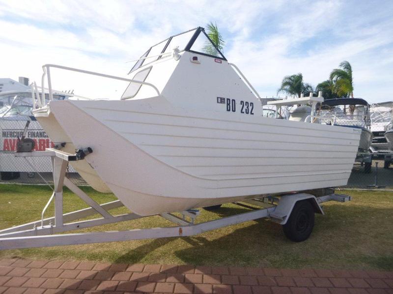 AFTER A SMALL CAT TO RUN AROUND IN, THIS IS IT. LIFEJACKETS, ANCHOR, FLARES, EPIRB, 27MEG RADIO, LOWRANCE HOOK 7 CHIRP COMBO SOUNDER/GPA WITH MAP. BAITBOARD, 80LTR FUEL TANK. POWERED BY A HONDA 75HP 4/STROKE OUTBOARD WHICH HAS JUST BEEN FULLY SERVICED, NEW TYRES AND BEARINGS ON TRAILER, THIS IS READY TO GO. MORE INFO PH. GRAHAM 0407 086 224