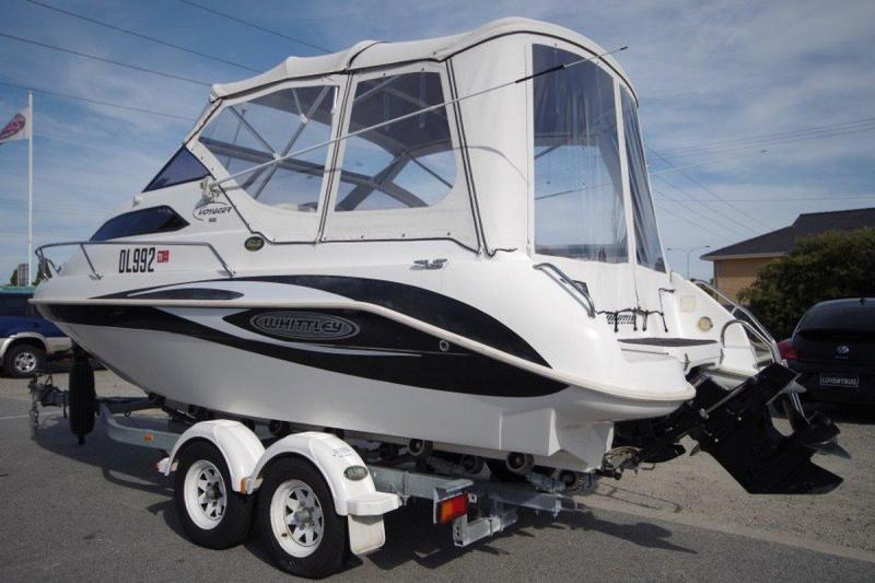 2006 Whittley 580 VoyagerPowered by: 2006 135hp Mercruiser Sterndrive (280hrs)Complete with: Dunbier TrailerFuel capacity: 100LCode: 5943Features:Navman Trackfish 6500F Sounder/GPSGME Music PlayerGME 27Mhz RadioBiminiFront & Side ClearsCamper CoverChemical Toilet & TankLed Lights Internal4 x New TyresNew Canopy2 x PFDsAnchor KitRear Shower Deck Wash2 x Batteries1 x NEW Spare Wheel