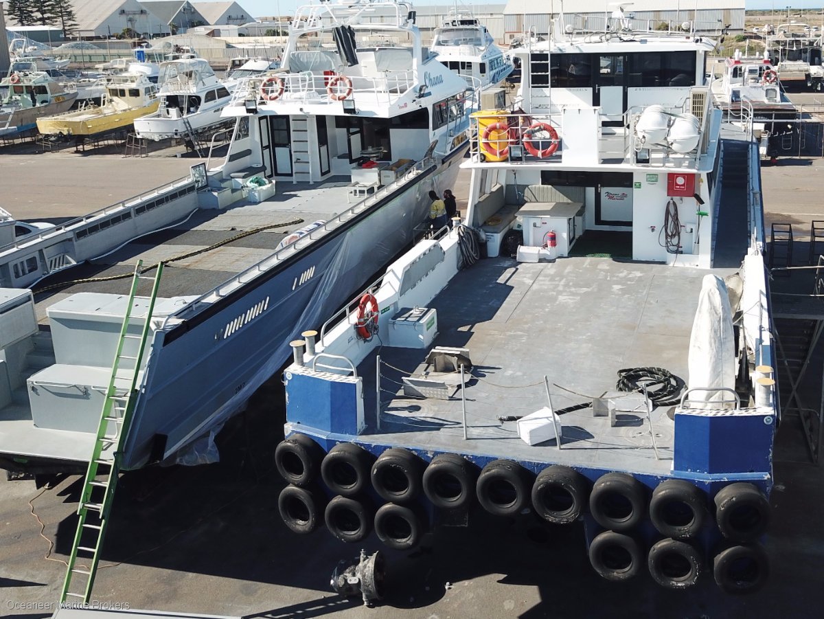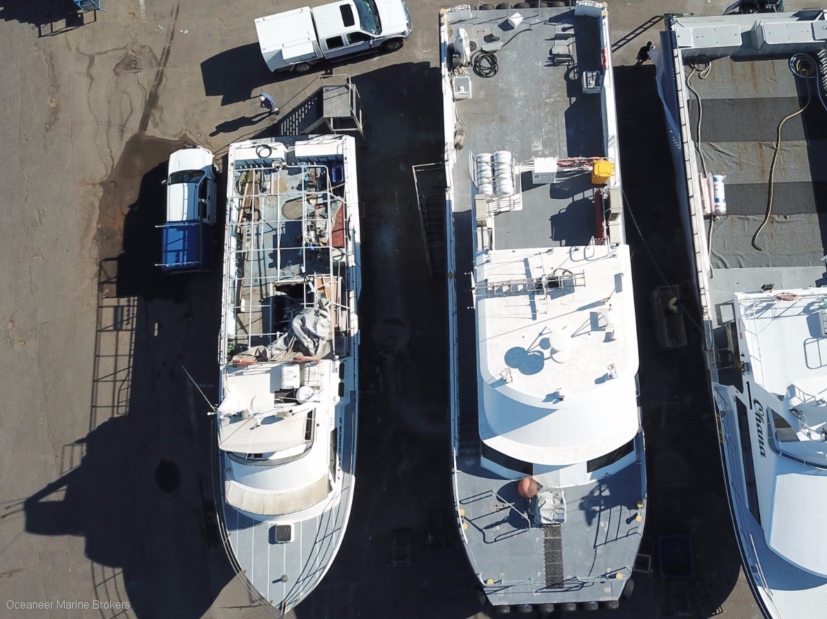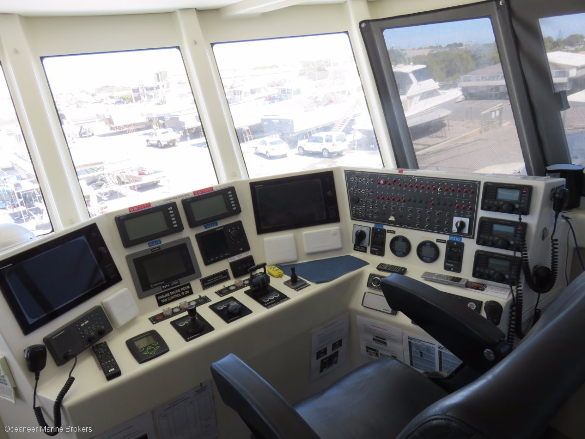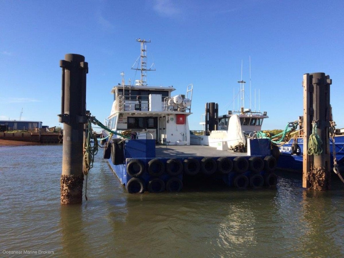 21.65m x 6.4m built in 2013. Vessel is in 1C, 1B and 2B survey (46+4 pax) and is powered by 2 x MTU V10's, 2 x Kamewa 45A3 jets and 2 x 25 kva g/sets. Vessel speeds of 20/30 knots, full galley, 8 berths, hiab, open transom, Haman sewerage, CCTV cameras, clear deck of 7 meteres, cargo 5 tonne, huge inventory list, vessel presents as new. All reasonable offers will be considered.